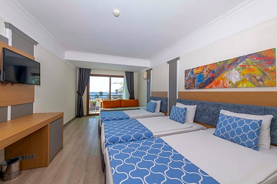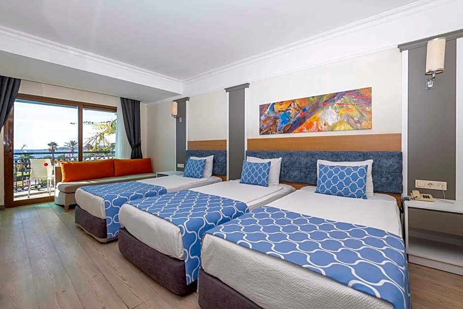 This resort is a dream come true for both families and couples, offering an array of amenities to cater to every guest. From a free water park and private beach area to a spa, indoor and outdoor swimming pools, and even a kids' club, there's something for everyone. Enjoy Turkish/Steam Baths, a sauna, and a fitness center, or partake in water sports facilities. The hotel also provides free Wi-Fi, beach umbrellas, beach chairs, and kid-friendly buffet options.